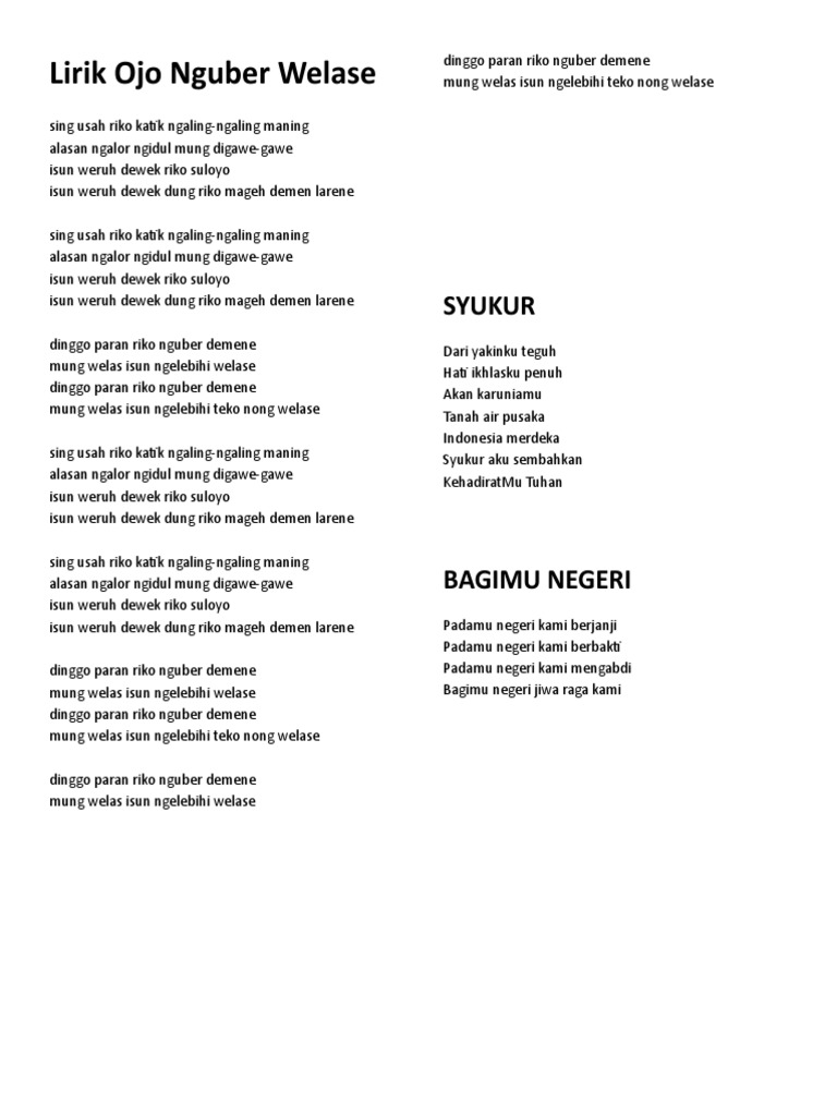 Lirik Lagu Ojo Nguber Welase Mahesa Student Terpelajar Media Pembelajaran Dan Informasi